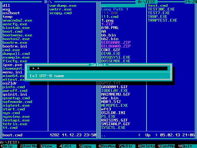 Большинство из них умеет работать с именами в UTF-8. UNZIP умеет большие файлы, в том числе при чтении по PXE, но не умеет bzip2 и древние методы упаковки из ZIP 1.0. SUBST может пригодиться когда надо открыть файл из каталога с именем, не поддерживающимся выбранной кодовой страницей. Для копирования в QC это не требуется, а, вот, для вызова вьюера - увы, поскольку кодовой страницы UTF-8 в QSINIT (пока? ;)) нет. |